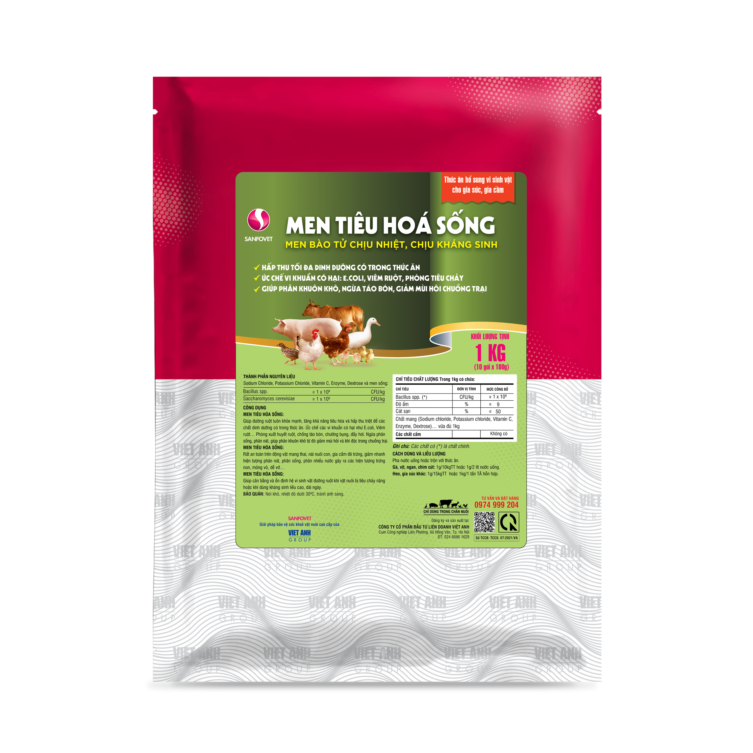 Giúp đường ruột luôn khỏe mạnh, tăng khả năng tiêu hóa và hấp thu triệt để các chất dinh dưỡng có trong thức ăn. Ức chế các vi khuẩn có hại như E.coli, Viêm ruột… Phòng xuất huyết ruột, chống táo bón, chướng bụng, đầy hơi. Ngừa phân sống, phân nát, giúp phân khuôn khô từ đó giảm mùi hôi và khí độc trong chuồng trại