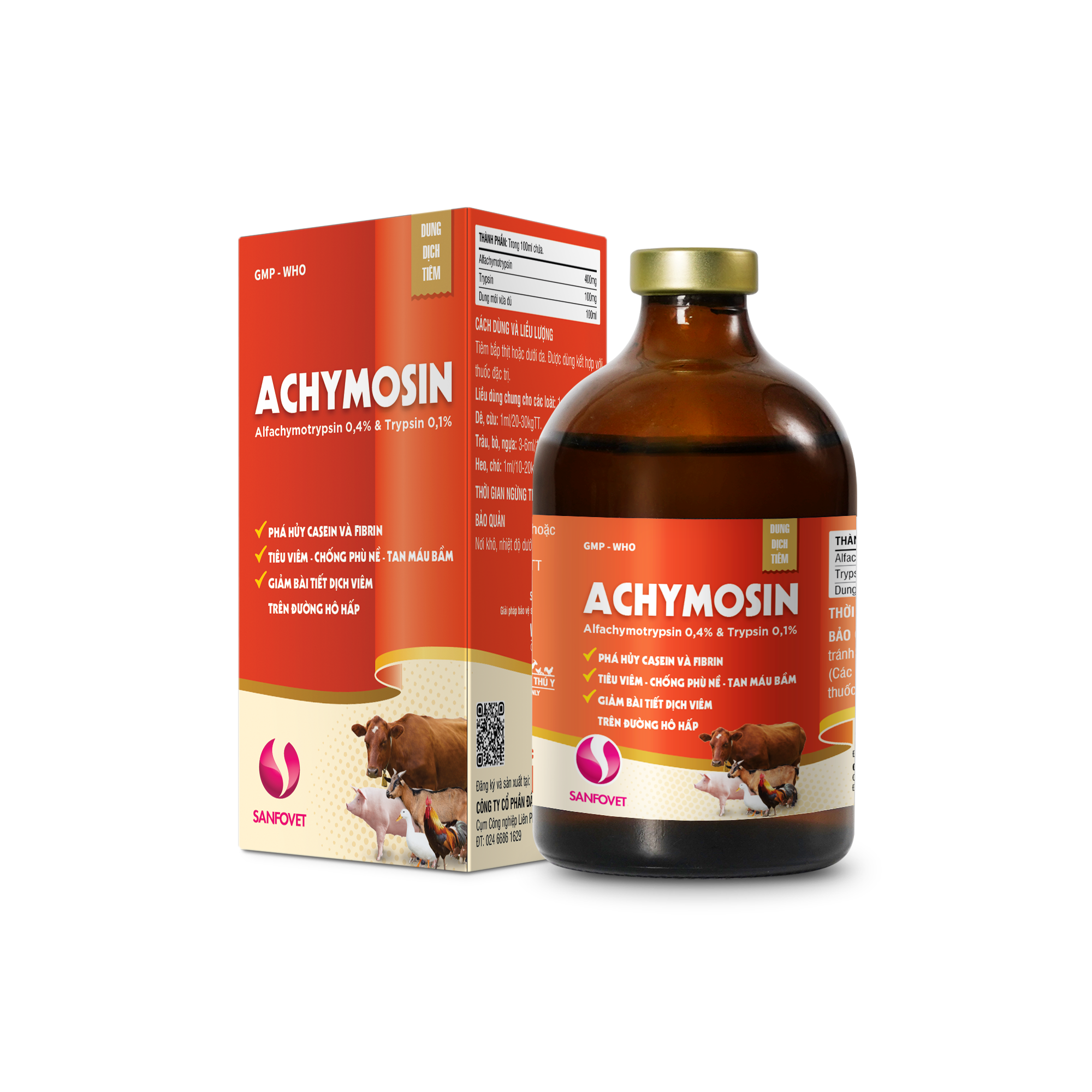 – Achymosin có tác dụng tiêu sợi tơ huyết, phá hủy fibrin và casein, do đó làm mất đi nơi khu trú của mầm bệnh, giúp làm tăng hiệu quả sử dụng kháng sinh đối với vi khuẩn.